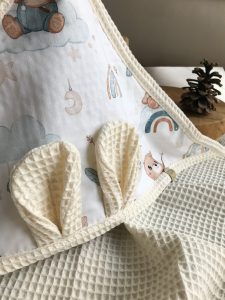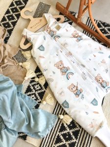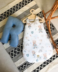 Bambusowy śpiworek z nogawkami misie w chmurach