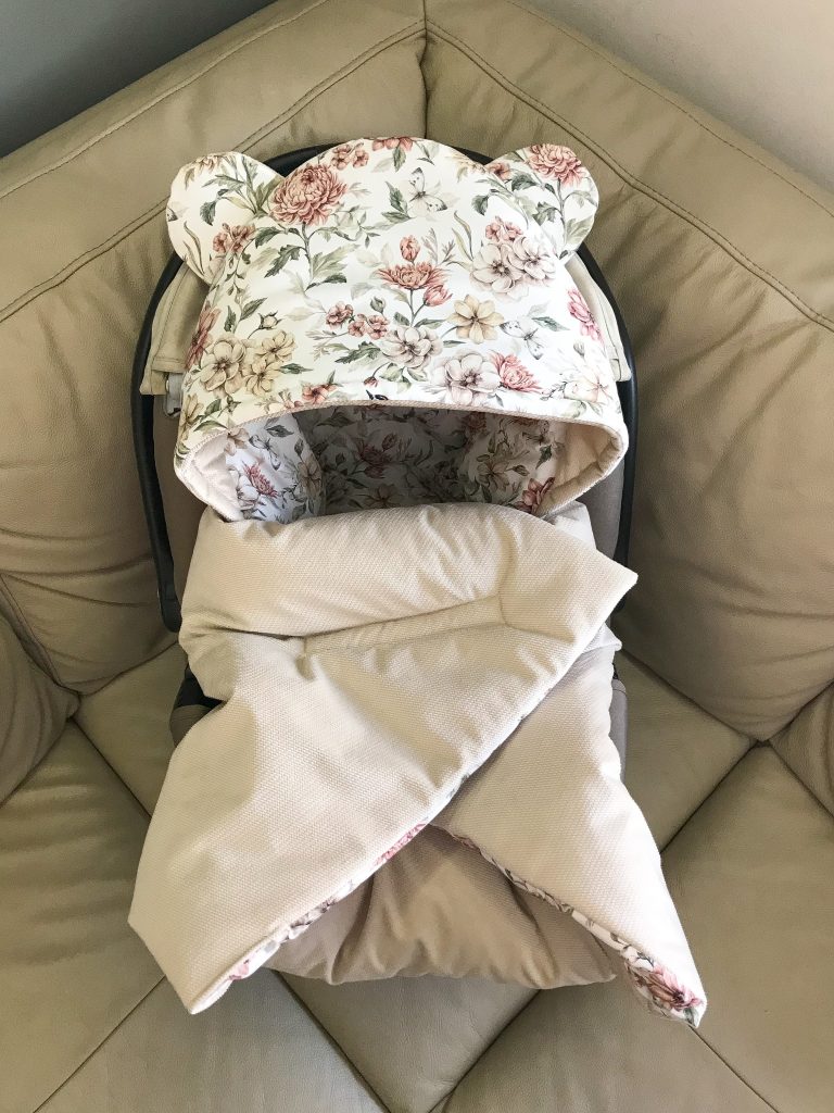 Kocyk dostosowany do trzypunktowego lub pięciopunktowego systemu pasów, otuli twoje dziecko podczas podróży. Nie musisz wybudzać go ze snu, jest wygodny i mięciutki. Posiada kapturek z uroczymi uszkami. Dodatkowo jest wszyty rzep, dzięki niemu bobas się nie odkryję.