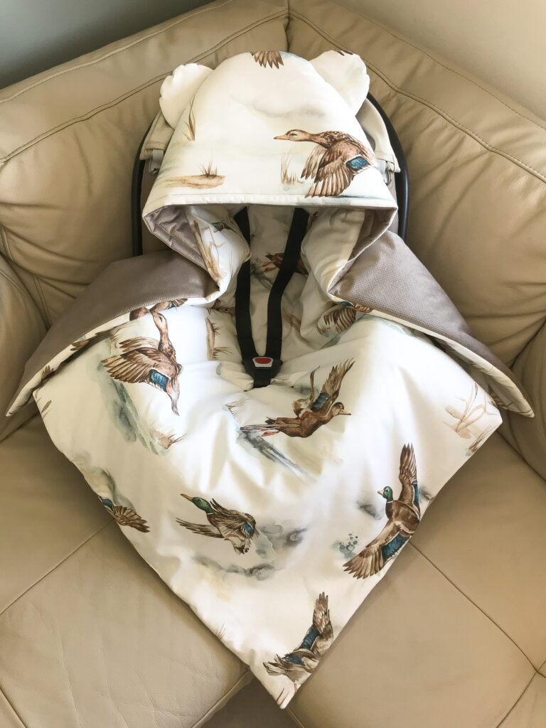 Kocyk dostosowany do trzypunktowego lub pięciopunktowego systemu pasów, otuli twoje dziecko podczas podróży. Nie musisz wybudzać go ze snu, jest wygodny i mięciutki. Posiada kapturek z uroczymi uszkami. Dodatkowo jest wszyty rzep, dzięki niemu bobas się nie odkryję.