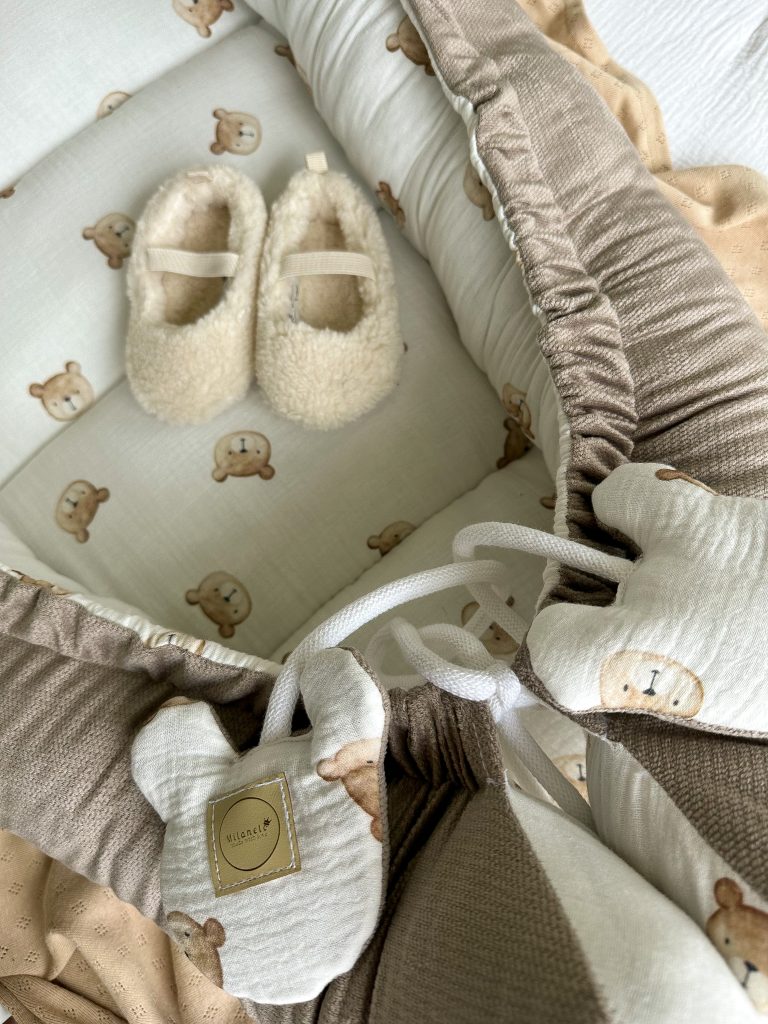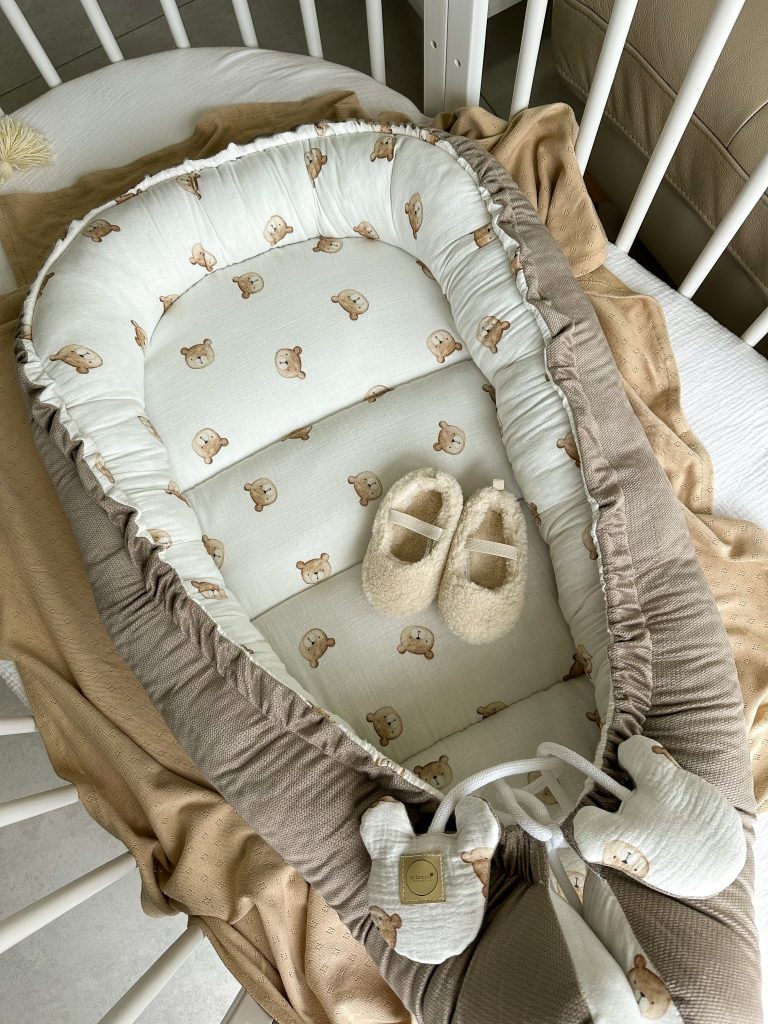 Wielofunkcyjne gniazdko sprawdzi się już od pierwszego dnia maluszka , wykonany jest z wysokiej jakości muślinu i niewykle przyjemnego velvetu.