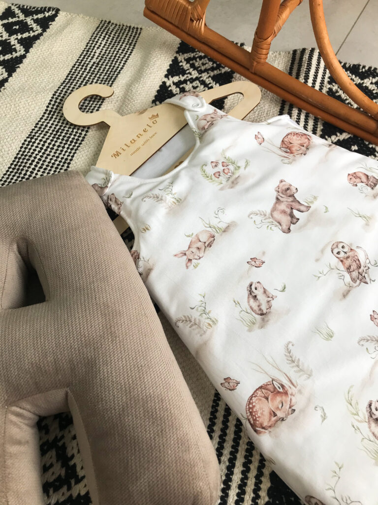 Wykonany jest z najwyższej jakości bawełny premium. Zapinany na górze na dwa zatrzaski, posiada wszyty zamek, dzięki czemu możesz przebrać dziecko podczas snu.