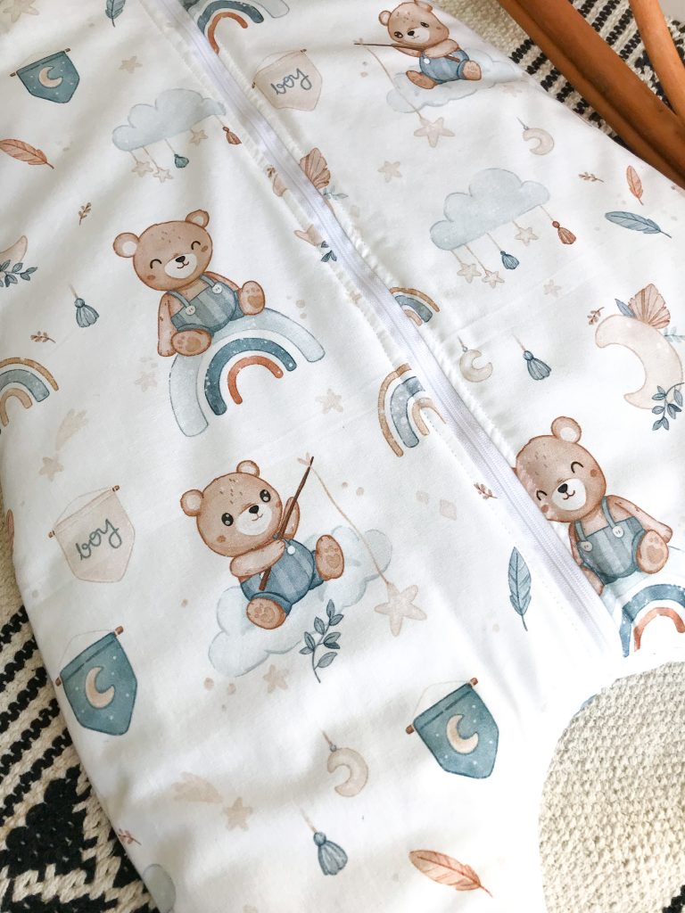 Milutki i ciepły śpiworek idealnie sprawdzi się do spania, nie musisz w nocy sprawdzać czy maluch się nie odkrył, zapinany na zamek, ściagacze są mięciutkie i nie uciskają nóżek.